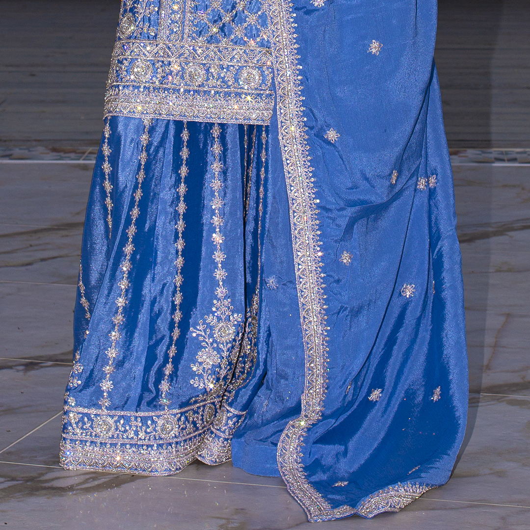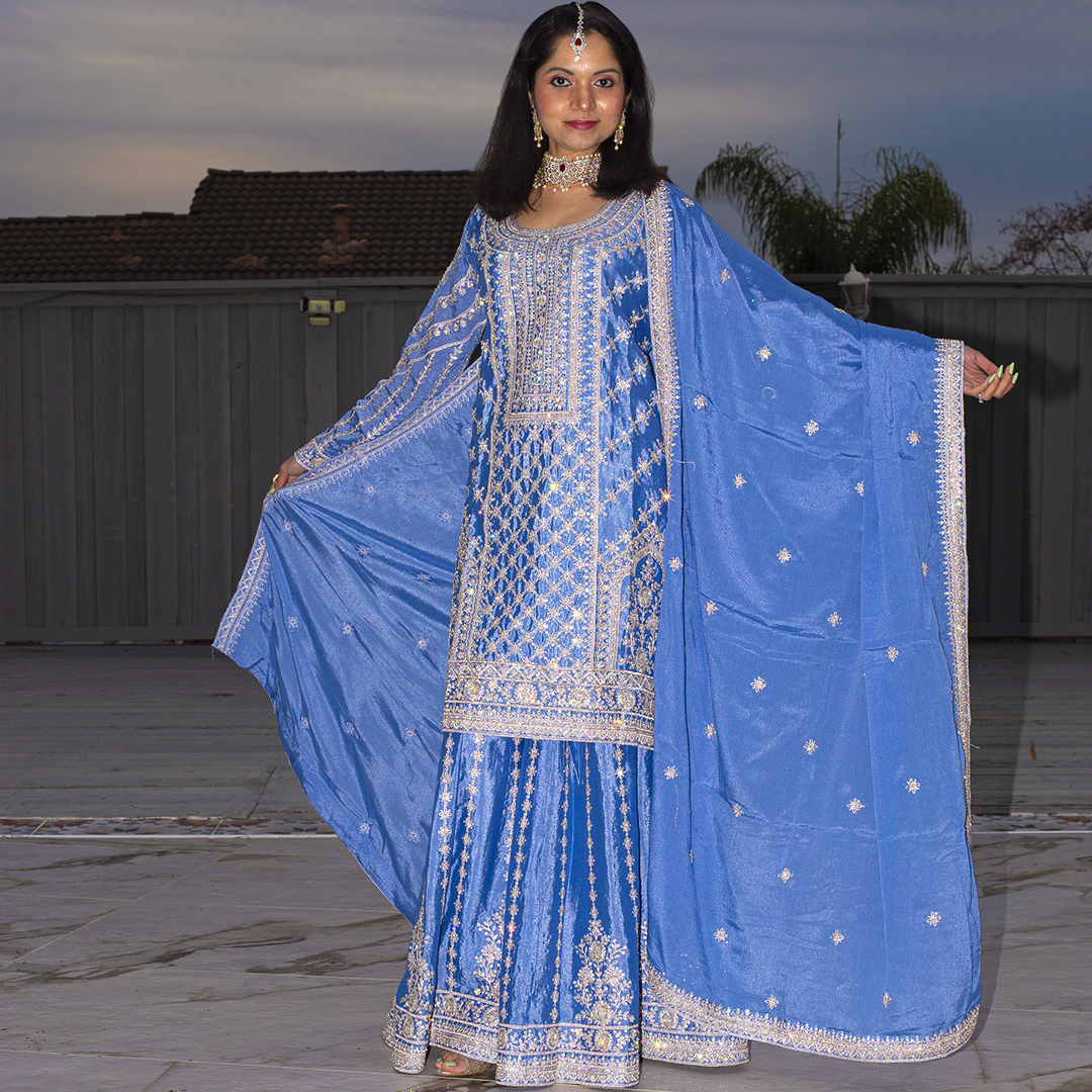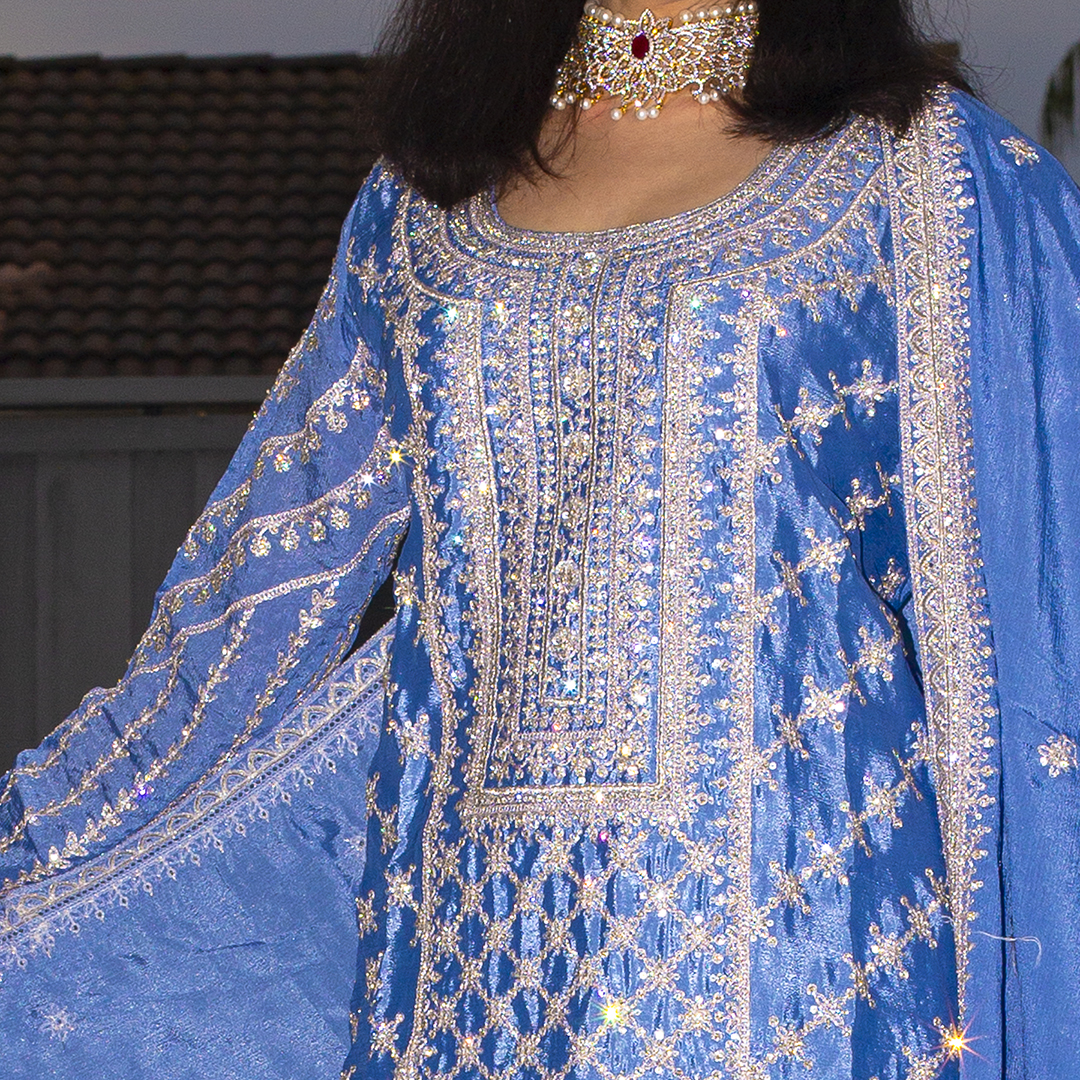 front and back with full of flower dupatta. Zardozi Embroidered ( Ancient Persian art using silver and gold threads)